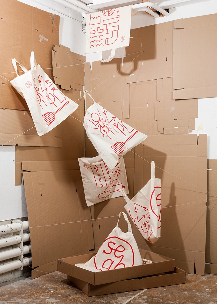 Diverse Piktogramme für verschiedene Taschensujets des Umweltbetriebes SEAB in Bozen, Italien.